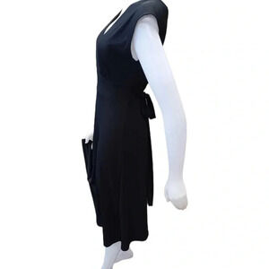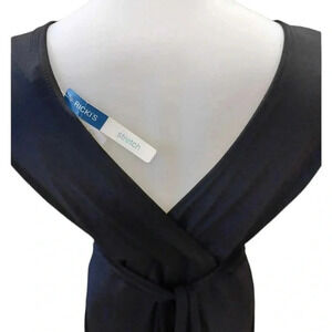 Ricki's Stretch, this may be the perfect LDB!. It's a midi with crossover bodice forming a deep V neck. There's a sash style belt attached to this sleeveless slip on. Perfect for date night or special occasion.