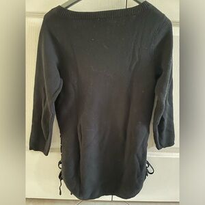 Elegant black sweater with ribbed texture and tied sides.