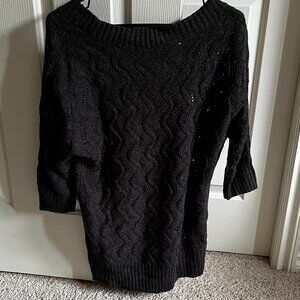 This is Ricki's black wool knit sweater. It is a woman's large. It has been worn maybe 5 times. It has 3/4 length sleeves.