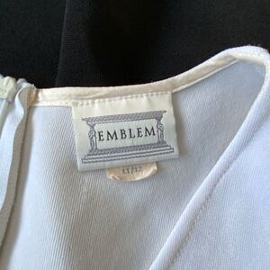 Emblem by Ricki’s black and cream, fit and flare sleeveless dress with floral embroidery details.