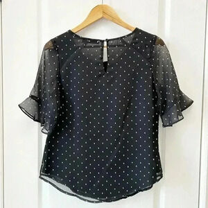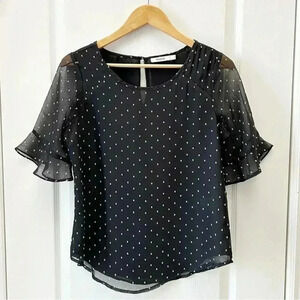 Ricki’s Blouse Short Ruffle Sleeves Sheer Flowy Black White Polka Dots Small