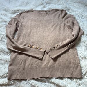 Elevate your everyday essentials with this Ricki’s brown long sleeve top in size small — the perfect blend of minimal elegance and cozy comfort. Crafted in a soft, fine-knit fabric with a relaxed-yet-tailored silhouette, this versatile piece features a crew neckline and standout rose gold button accents along the sleeves for a subtle touch of shine and sophistication.