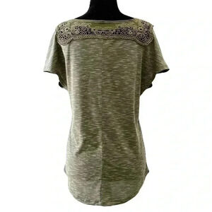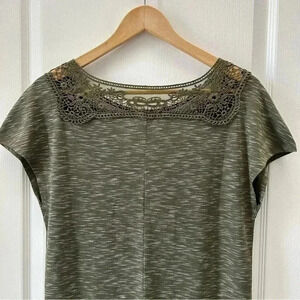 Ricki’s Cap Sleeve T-Shirt Crochet Trim Top Khaki Green Space Dye Small