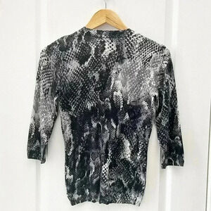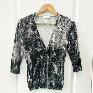 Ricki’s Cardigan Snakeskin Print V-Neck Button Front Fitted 3/4 Sleeves Grey XS