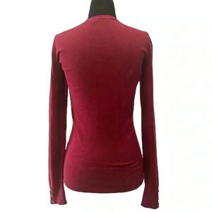 Ricki’s Cardigan V Neck Button Front Fitted Burgundy Size Small