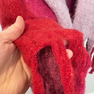 Ricki's Chunky Fringe Pink Plaid Green Fluffy Oversized Scarf