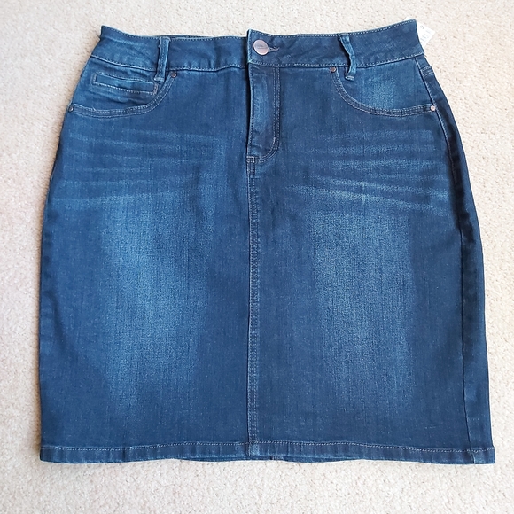 Boho-chic blue jean short skirt with front pockets and a zipper/button enclosure. Perfect for everyday wear.