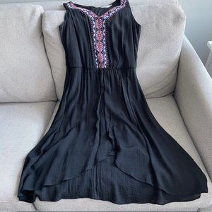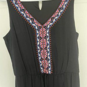 Fabric has texture with some stretch, elastic in the waist; tie in a bow at the center but it is not a drawstring