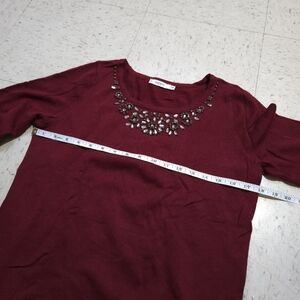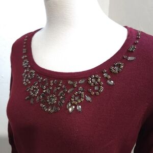 Elegant burgundy top with stunning embellishments. Perfect for adding a touch of glamour to your wardrobe.
