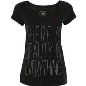 Ricki’s Fitted T-Shirt Slogan Graphic Short Sleeve Tee Cotton Modal Black XS