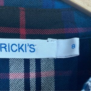 Ricki’s Navy Plaid Babydoll Peplum Button Front Blouse Shirt Top Sz 8