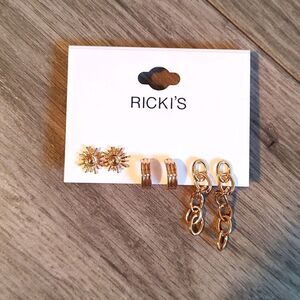 Ricki's New With Tag Gold Sun, Hoop, & Chain Trio Pack Of Earrings