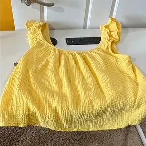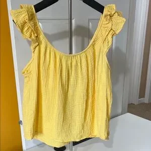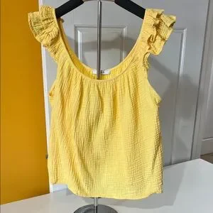 Add a pop of color with this vibrant yellow blouse. Features charming ruffled sleeves. Ideal for casual wear.