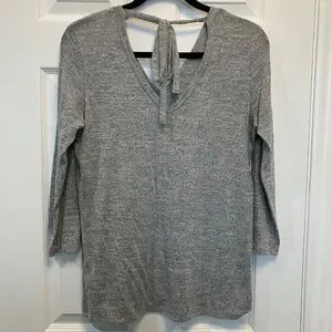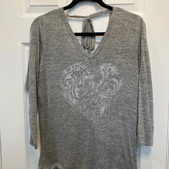 Lightweight sweater features a heart design and cute tie at the back.