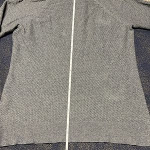Cute gray sweater with a nice laced up design on both shoulders.