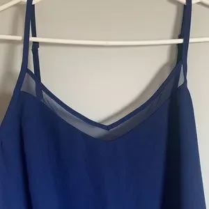 Beautiful Blue Tank Mesh Top Detail Adjustable Straps Lined In excellent condition
