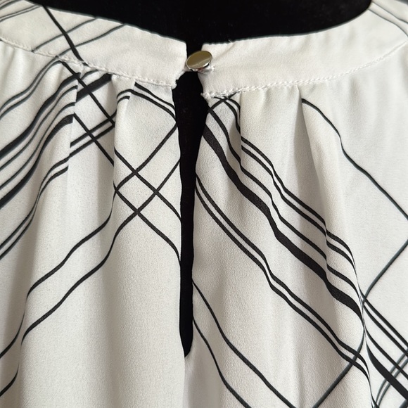 Good condition, does have minor pit stains and a few snags in the material. Size xxl White and black Has inner lining Pit to pit 25.5” Length 29”