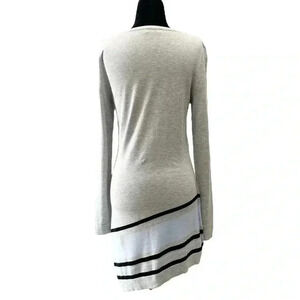 Ricki’s Tunic Sweater Asymmetrical Hem V Neckline Grey Blue Black Stripes XS