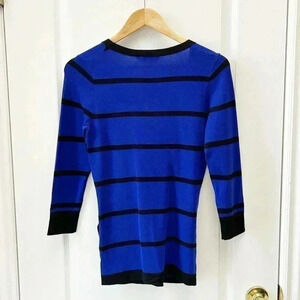 - Rickis Wrap Front Deep V Neckline Thin Knit Sweater Cobalt Blue & Black Stripes XS