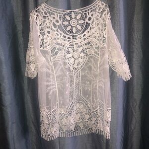 Ricki’s XL white sheer blouse with lace pattern , new or like new