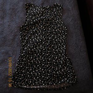 This top is both adorable and comfortable! The keyhole neckline with ruffles, ruching at the waistline, and lining draw attention away from unflattering features. It is 95% polyester with 5% spandex, lightweight and soft, and works well with skirts, shorts, and pants. It is a size XS and is in great condition with no stains, snags, holes, or rips. Let me know if you'd like additional information!