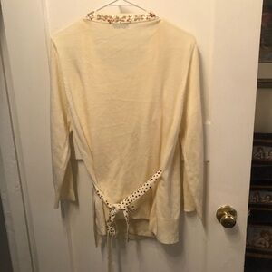 Rickis exl Cream Knit Sweater with Floral Detail, matching tshirt . Wrap around sweater, ties at back, little bit of bling makes it sparkle.worn once