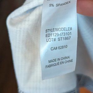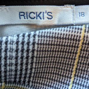 Super comfortable knee-length dress from Rickis. Size 18. Off the shoulder sleeves, faux button front.95% Polyester, 5% spandex, soft to touch with just a little give to the fabric. Worn once. Zip back.
