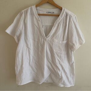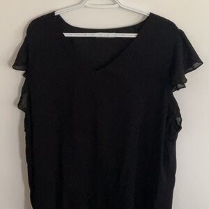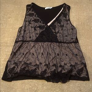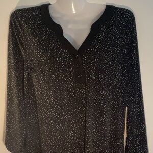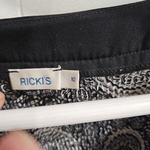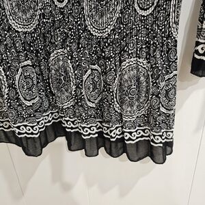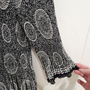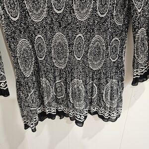 Ricky’s Black & White Medallion Boho Blouse V-Neck Bell Sleeve Size 10