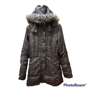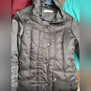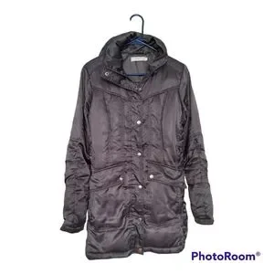 Dark Grey. Excellent condition, looks great worn. Slim fit. Has a detachable hood, as seen in first pic. Size S.