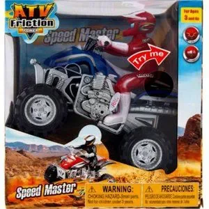 F/P B/O ATV w/ Rider – Friction Power 7.5″ All-Terrain Vehicle w/ Sound & Light. Uses 3 AG13 Button Batt’s.(Sound & Light)(Incl.)
