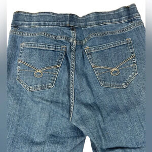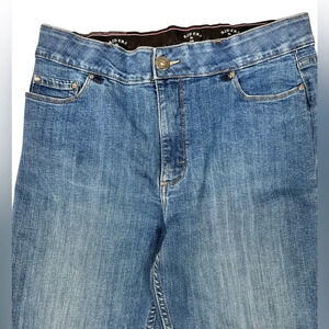 Riders by Lee Curvier wide-leg jeans, 34”W, stretchy waistband, mid-wash blue