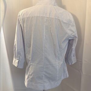Stylish and comfortable women’s wash and wear blue checkered shirt with three quarter sleeves. Perfect for casual and formal occasions. Easy to care for. Quality and Excellent condition.