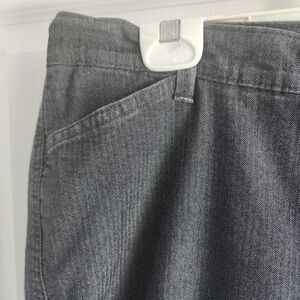Riders by Lee in a Charcoal Gray with a Herringbone pattern. No s8ze or care tag but I believe they are a size 12. see measurements below.