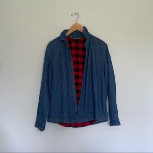 Riders by Lee Plaid-Lined Denim Button-Down Long Sleeve Shirt Jacket Size Medium