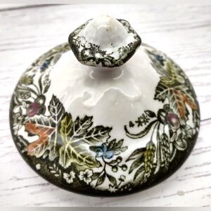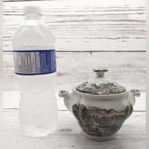 One Ridgeway Staffordshire England Sugar bowl with lid,Bartlett's scene of 1842 of A Lake farm on the Frontier.