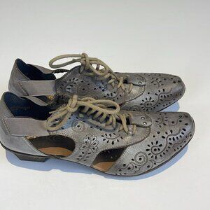 Rieker Anti-Stress Lace-Up Mary Jane Pumps in Grey/Brown - Size 39 (US 8)