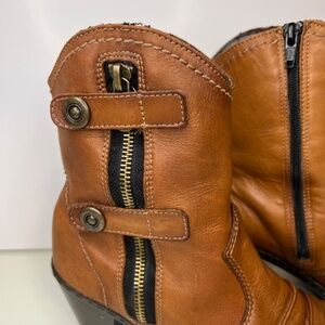 Rieker Bootie Brown Leather Heel Tan Shoes Womens 38 US 7 Side Zip Ankle Boots