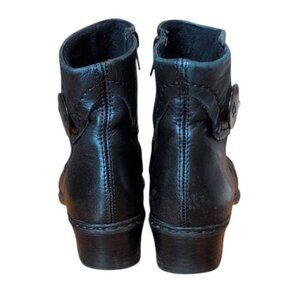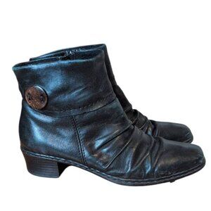 Rieker Boots Slouchy Ankle Boot in Black Leather Zip up Sides 3/4" Heel Shoes