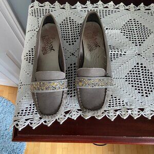 Rieker Antistress Gray Moccasin Flats with Decorative Crystal Band – Size 8.5