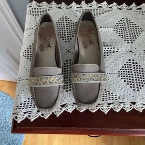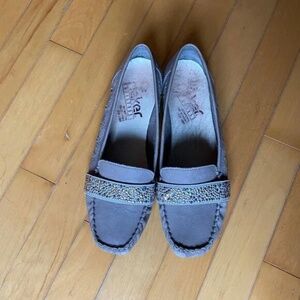 Rieker Antistress Gray Moccasin Flats with Decorative Crystal Band – Size 8.5