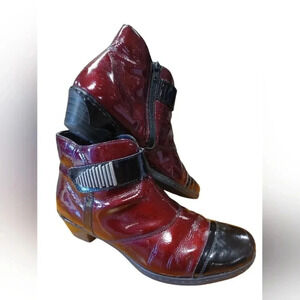 Rieker Red And Black Zip Up Ankle Boots Size 39