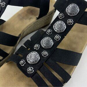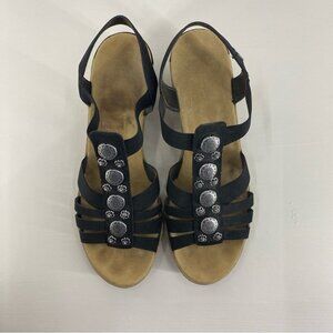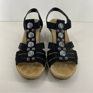 Rieker T-Strap Black Sandal Wedge with Silver Accents Women’s size 41 or 9.5