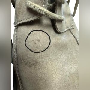 Suede tan shoe lace up ankle height small blemish on toe as seen in last photo