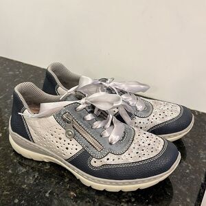 Rieker Women's L3235-16 Derbys. Size 37. Blue/Grey/White. Grey ribbon lace up. Excellent Condition 💕💕