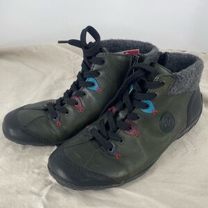 Rieker Women’s Size EU38 Leather Wool Ankle Bootie Green Funky Blue Red Spots