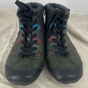 Rieker Women’s Size EU38 Leather Wool Ankle Bootie Green Funky Blue Red Spots
