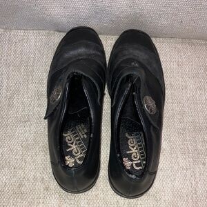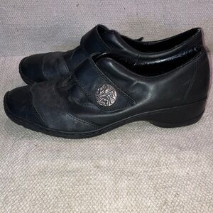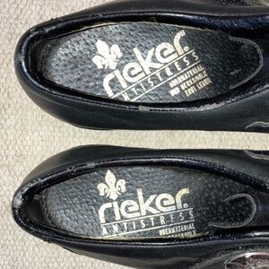 Rieker women’s size 39 Black Leather Mules with Silver Accent