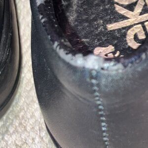 Fair used condition due to some wear right along edge and scuffing as seen in photos. Structurally great shape including footbed .velcro strap.