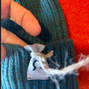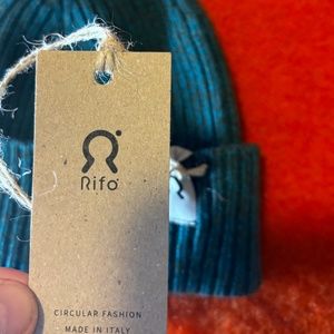 Rifo green Marcello cashmere tuque hat beanie new with tags. 95% recycled cashmere and 5% recycled wool, 2 ply yarn technique in rib texture, the official colour is forest green but it looks like a mix between green and brown to me. Colour is accurate in the stock photos, mine are taken in artificial light, sorry about that. Rifo is a Bcorp certified company in Italy. Made ethically in Italy. Luxurious and perfect as a gift for a loved one or for yourself! Marked One size, please see pictures for measurements (it fits on the smaller size in my opinion). This item comes from a smoke free, pets friendly home. Recycled bags/box used when possible. Please, let me know if you'd like any additional info. Thanks for watching!
