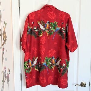 Rima Red Tropical Flowers Parrot Hawaiian Style Button Down Shirt Size XL @Z